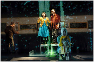 Näytelmä on hyvin uskollinen kirjalle, tosin lyhennetty tuntiin ja 40 minuuttiin (ilman väliaikaa). Näyttelijöiden puhumina ja elehtiminä kirjan humoristiset puolet tulivat paremmin esiin. Hieman sekavaa oli tosin se, että samat näyttelijät esittivät eri henkilöhahmoja ilman vaatteiden vaihtoa. Lavastuksessa on käytetty paljon vettä, mikä sopii siihen, että kirjassa uidaan paljon ja käsitellään muutenkin vesi-teemaa. Vilma Melasniemi teki minuun suurimman vaikutuksen Elsan herkkänä lapsenlapsena Annana, joka kärsii parisuhteen kariutumisesta. Melasniemi on uskomattoman suloinen, hoikka ja tyttömäinen! Ajattelin myös näytelmää katsoessani, että onpa upeaa, että Riikan kotona näppäilemistä sanoista on syntynyt suosittu romaani ja sitten vielä näytelmä, jota myydään loppuunmyydyille saleille!